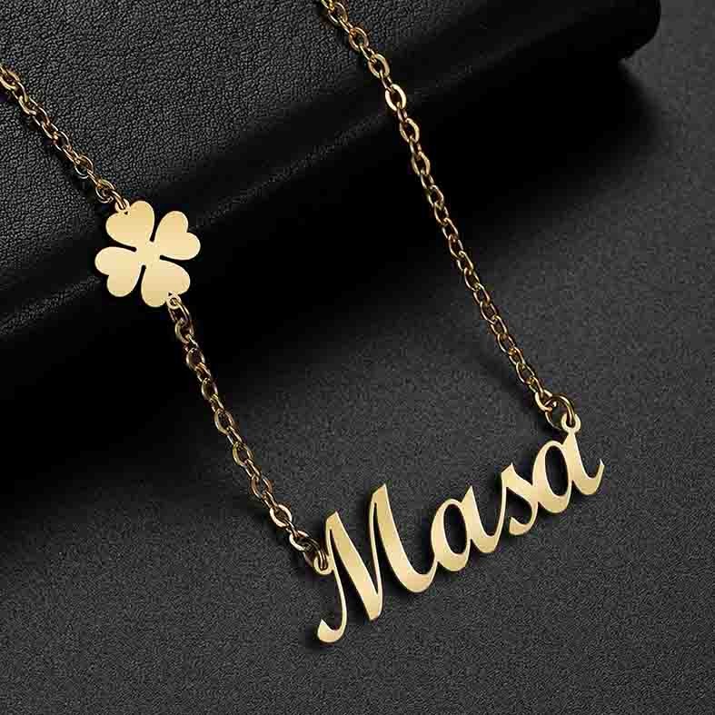 مجوهرات نسائية عقد نسائي سلسال مع قلادة بالإسم مع زهرة البرسيم مصنوع من أجود أنواع الفضة الاسترلينية 100% عيار 925 مطلية بالذهب عيار 21 قيراط طول السلسال كامل 45 سم حجم الاسم 3.3 سم مجوهرات أصلية مناسبة جداً للاستخدام الشخصي أو لتقديمها كهدية في عيد الزواج وعيد الحب وحفلات التخرج وجميع المناسبات. تأتي القلادة بصندوق محفور عليه اسمك وتغليف فاخر . جميع الأسماء متوفرة وفي حال عدم وجود اسمك يمكنك إجراء طلب شراء لأي اسم وكتابة الاسم المطلوب في خانة الملاحظات.