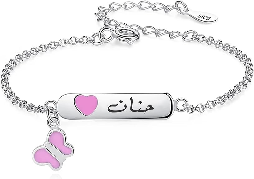 سوار أطفال بالفراشة مصنوع من الفضة الإسترليني 100% عيار 925 محفور عليها الاسم.